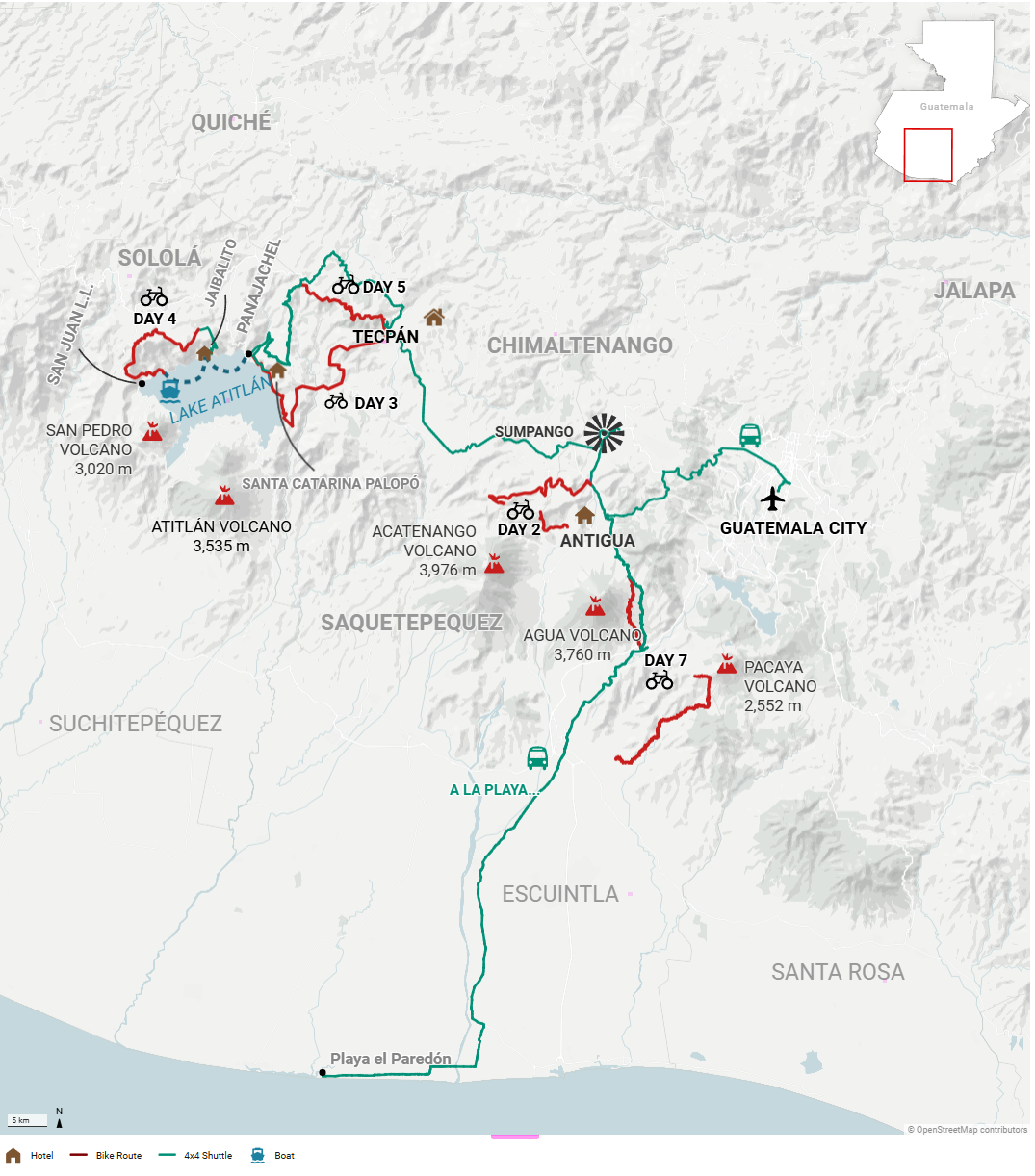 Experience a diversity of climates in the heart of the Kaqchikel culture on this legendary ride from high-altitude pine forests, a maze of dry canyons, and small towns, finishing on the shore of one of the most beautiful lakes in the world.